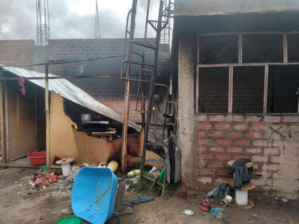 La humilde casita de Katy Rojas Chahua (35), ahora luce llena de cenizas, en cuestión de segundos gran parte de la estructura fue consumida por el fuego que se originó por el uso de un pirotécnico.