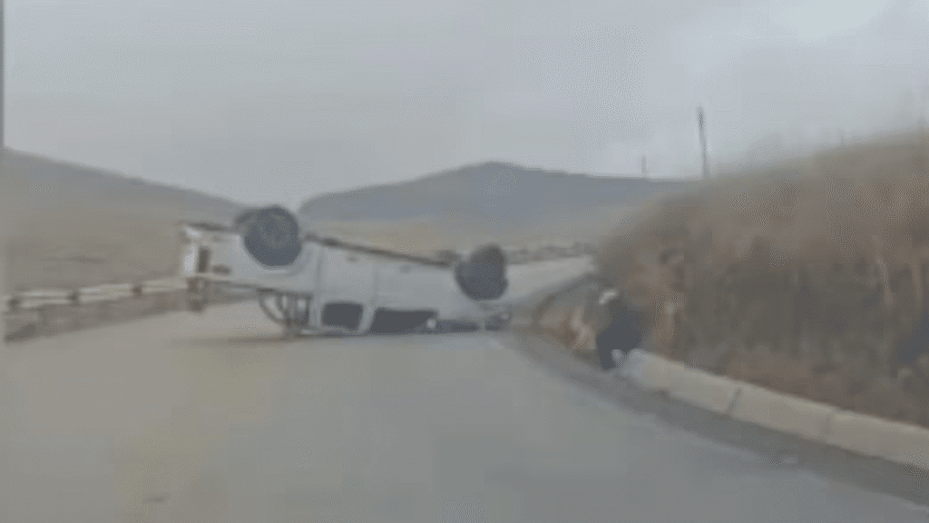 El vehículo terminó con las llantas hacia arriba; uno de los ocupantes sufrió un traumatismo craneano moderado. Un aparatoso accidente