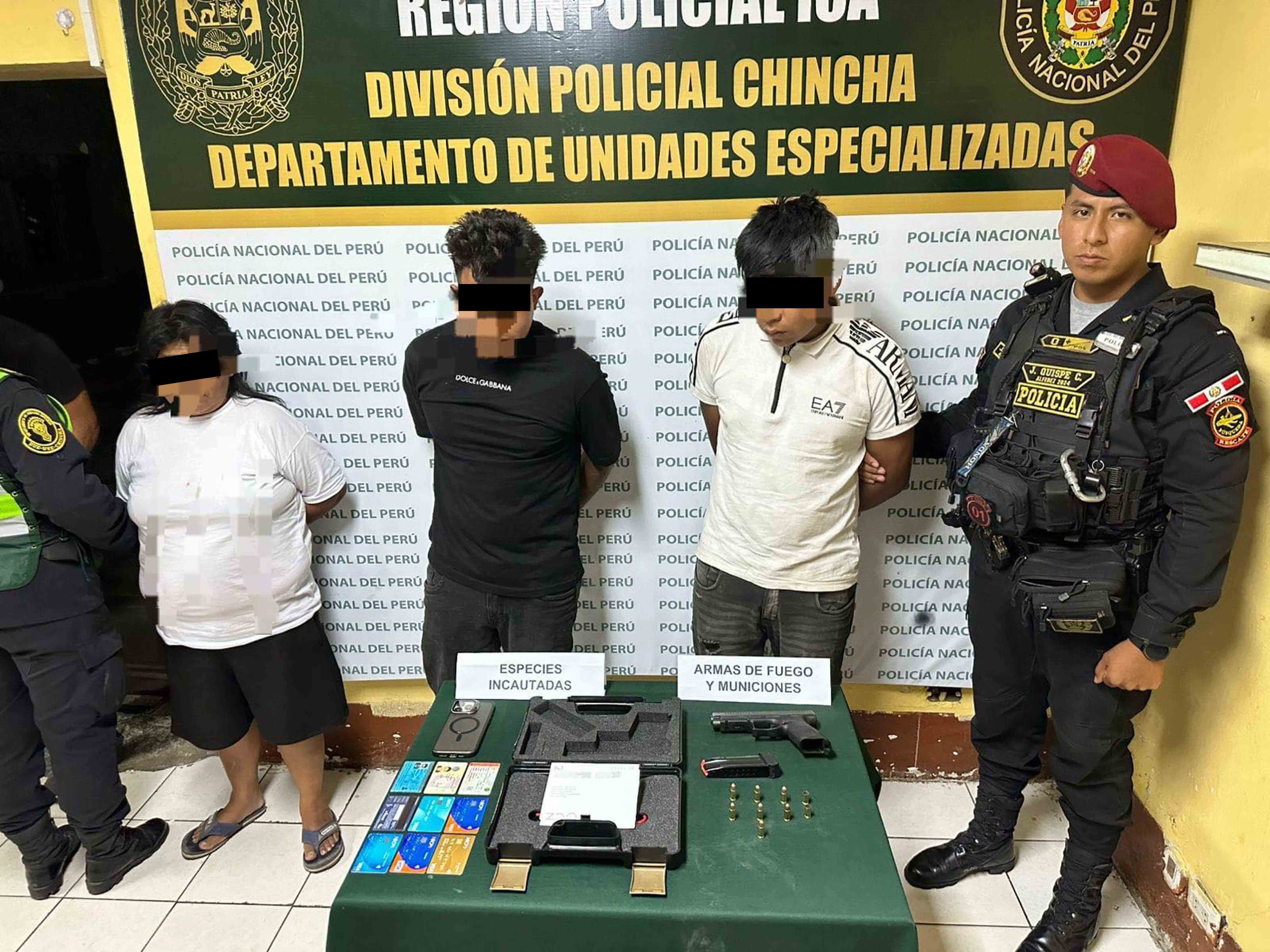 EL DATO: La captura de los hombres y la fémina tras los disparos fue realizada por personal de la comisaría de Pueblo Nuevo en coordinación con efectivos de la Dirección de Investigación de Cañete.
